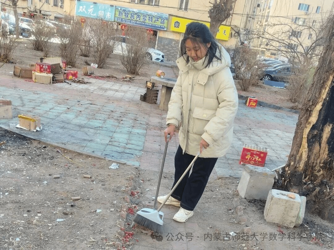 践行社会责任,筑牢基层防线。聚焦社会服务与基层治理,数学学子在普法宣传、社区安全、扫黄打非等领域主动作为。他们走进社区网格、乡村集市,通过海报张贴、案例讲解、知识问答等形式,向群众普及民法典、未成年人保护法等法律法规,宣传扫黄打非、网络安全知识。在环保清洁行动中,志愿者们深入城市公园、草原景区,开展垃圾清理,倡导绿色低碳生活理念,助力北疆生态保护。针对社区安全工作,学子们协助开展消防安全排查、应急知识演练,用专业能力为社区平安保驾护航。