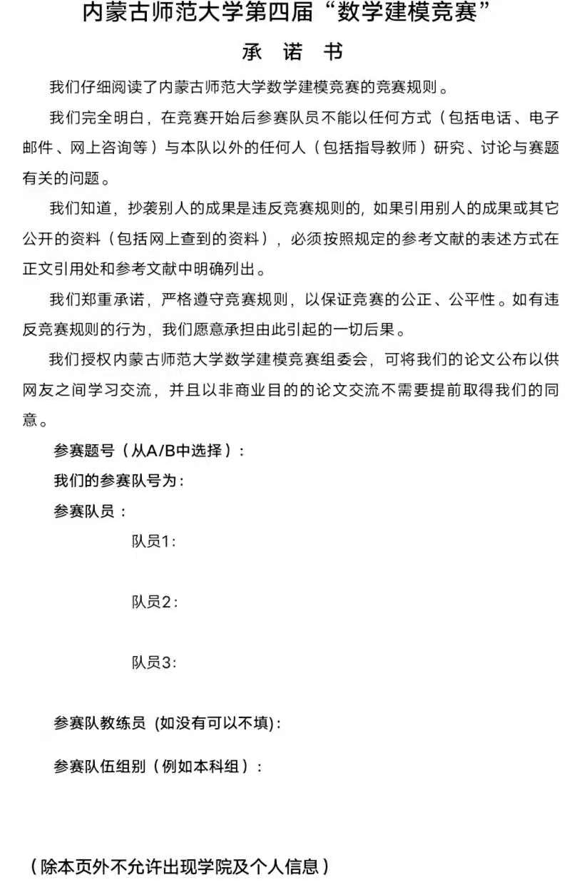 ky开元集团第四届“数学建模竞赛”承诺书