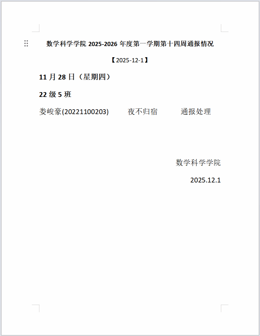 ky开元集团2025-2026年度第一学期第十四周通报情况