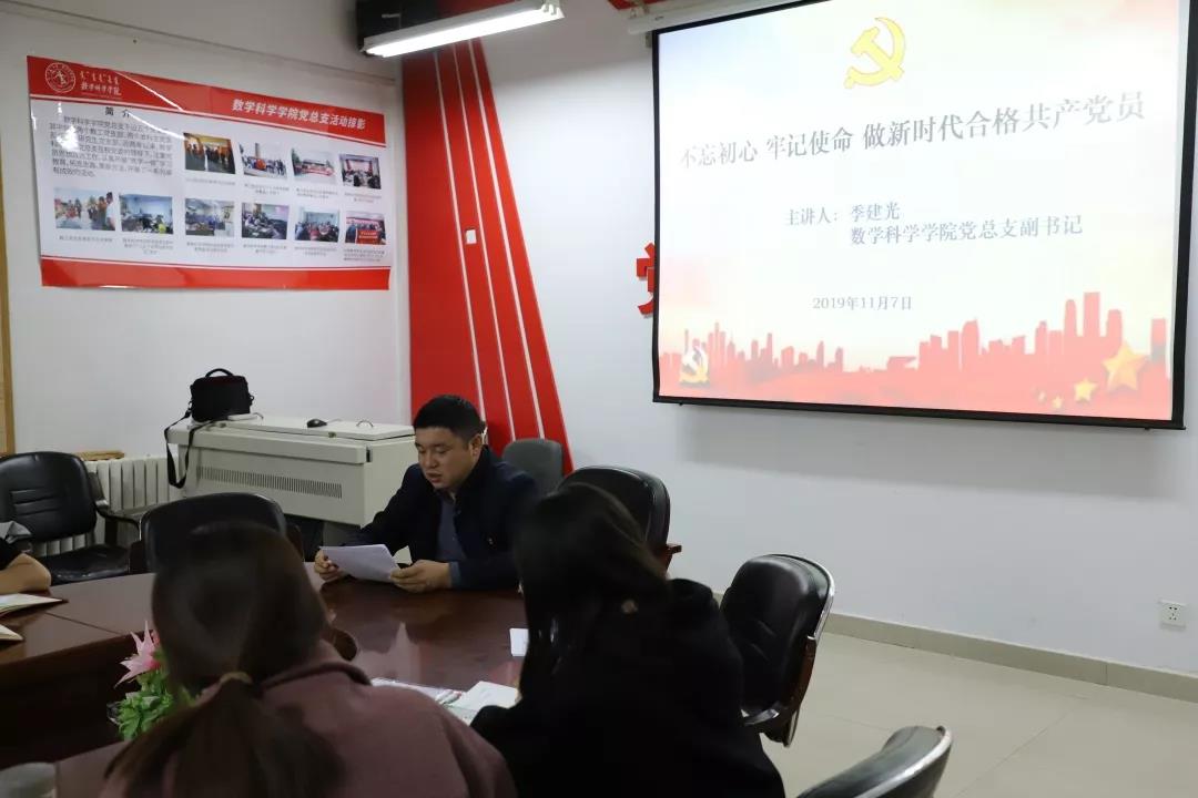 2019年11月7日,ky开元集团于学院楼会议室组织学院学生党支部成员学习“不忘初心、牢记使命”——做新时代合格共产党员主题党课。此次主题党课主讲人为学院党总支副书记、副院长季建光老师。
