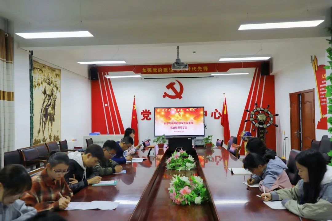 为引导开元官网青年学生了解党的光辉历史、感悟党的初心使命、领会党的创新理论、体会党的精神谱系、传承党的红色基因,2021年4月26日晚上7点,开元官网于会议室开展了数学与应用数学学生党支部党史知识领学会。本次活动以线上线下相结合的方式,由学院团总支书记皮建东老师主持,数学与应用数学学生党支部全体党员参加。