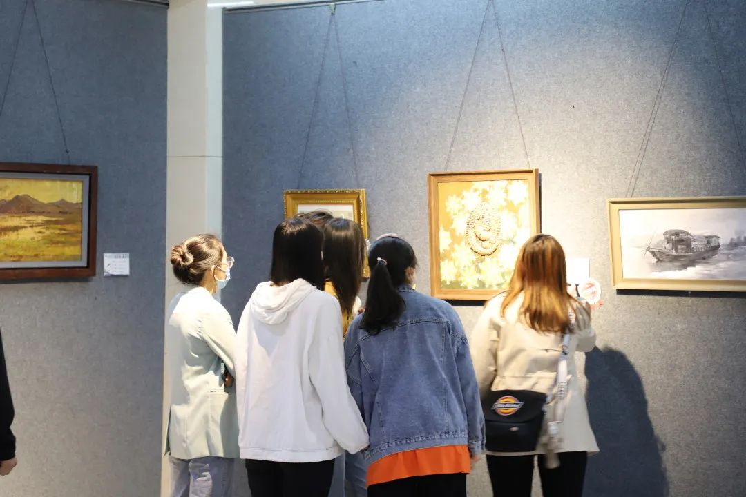 同学们认真参观每一幅作品,从作品中获得感悟和力量。深刻感受到中国共产党的百年光辉历程。这是最生动的党史教育,也是将党史融入生活艺术的最佳方式。