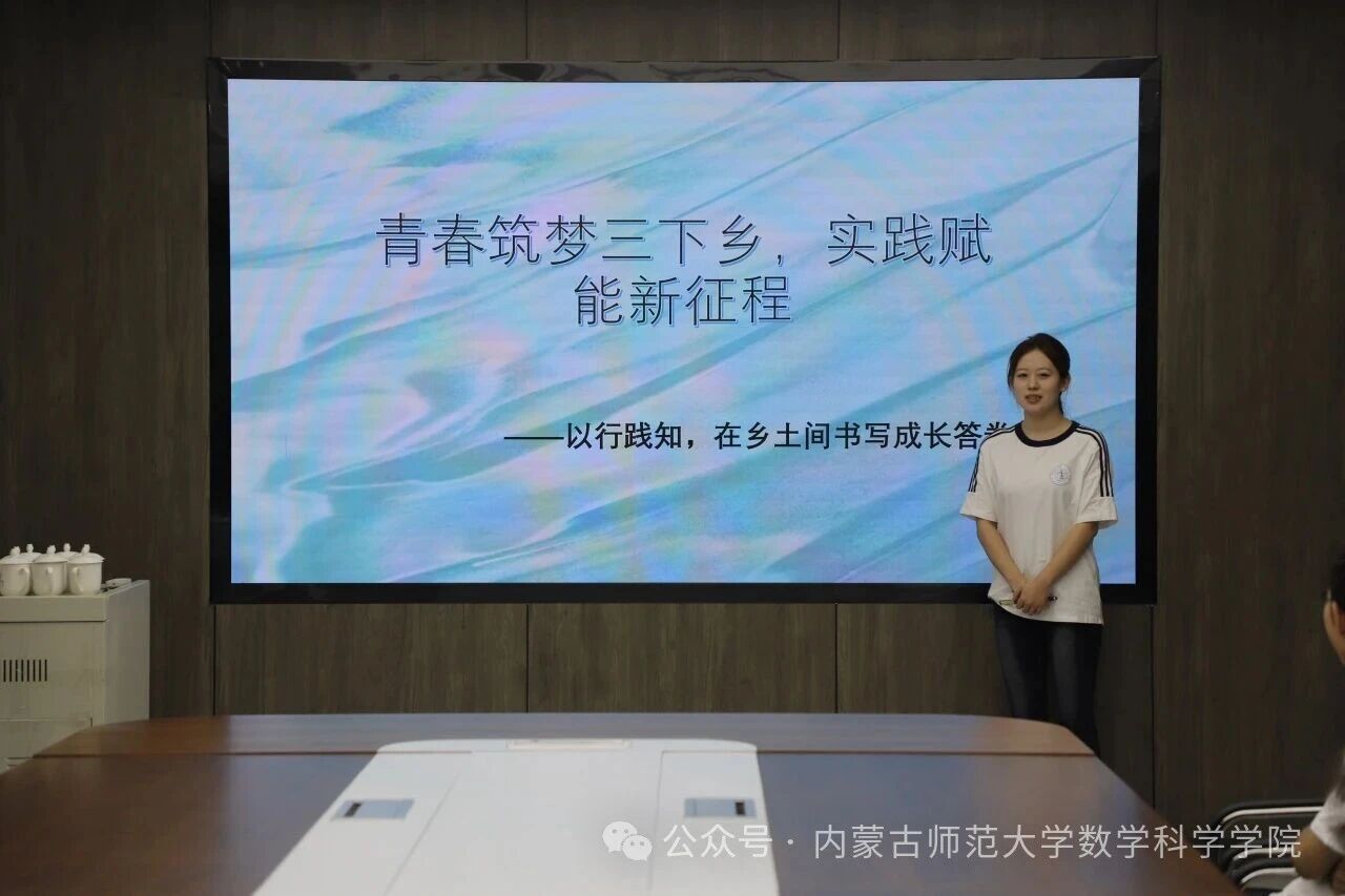 志愿者们依次上台,用鲜活的话语、真挚的情感,讲述实践中的点滴见闻与所思所感。他们分享了从初到服务地的新奇与忐忑,到投身教育帮扶工作时的执着坚守;从组织各类劳动实践活动的辛勤付出,到个人能力素质的全面提升,每一处细节都饱含着青春的热血与担当,充分展现出数学学子“严谨、务实、团结,奋进”的优秀品质。