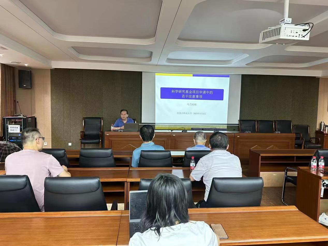 7月3日下午,应ky开元集团邀请汕头大学教授、ky开元集团特聘教授乌兰哈斯先生作题目为“科学研究基金项目申请中的若干注意事项”的学术讲座。出席本次讲座的有刘官厅教授、扎其劳院长、包霞副院长以及开元官网部分教师。