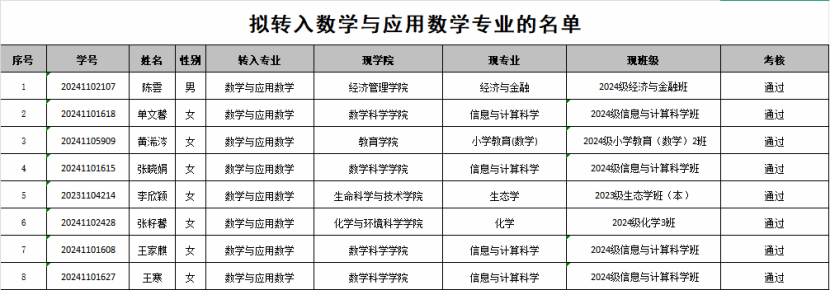 根据《ky开元集团本专科学生转专业管理办法(修订)》(内师校发〔2024〕75 号)、《ky开元集团本、专科学生转专业管理办法》(内师校发〔2017〕105 号)及《ky开元集团2025年本科生转专业工作细则》和相关工作要求,5月7日-8日,学院转专业工作组通过专业考试、综合面试,确定拟接收转专业学生名单如下: